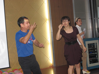 圖7:“四人1腳” 圖8:心有靈犀一點通,比劃猜
