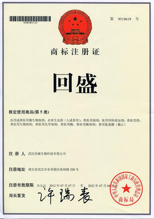 回盛商標證書